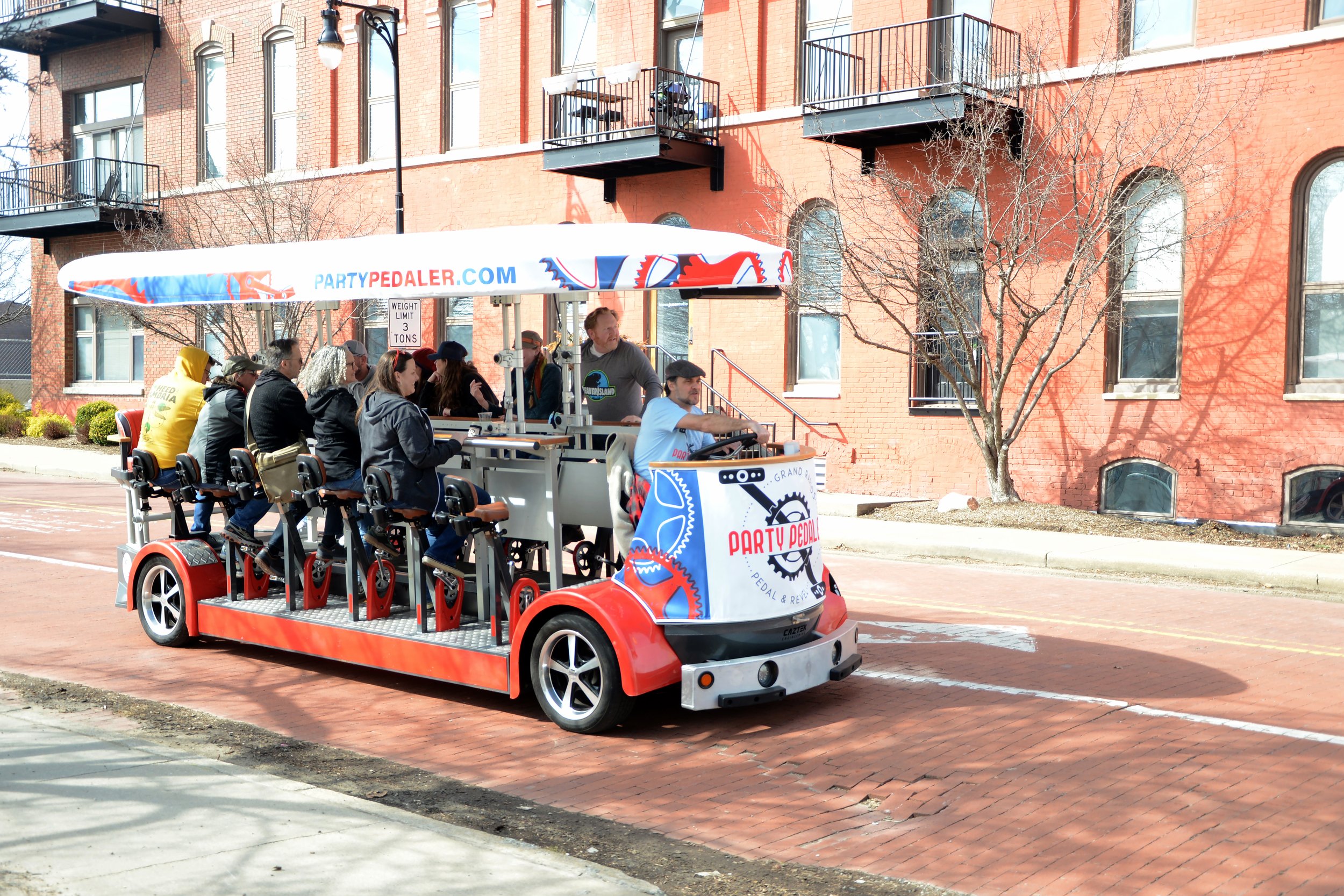 Grand Rapids Party Pedaler is a 15-person mega-cycle/party bike with 10 pedal stations and four wheels. It is the most fun you can have on four wheels in downtown Grand Rapids.